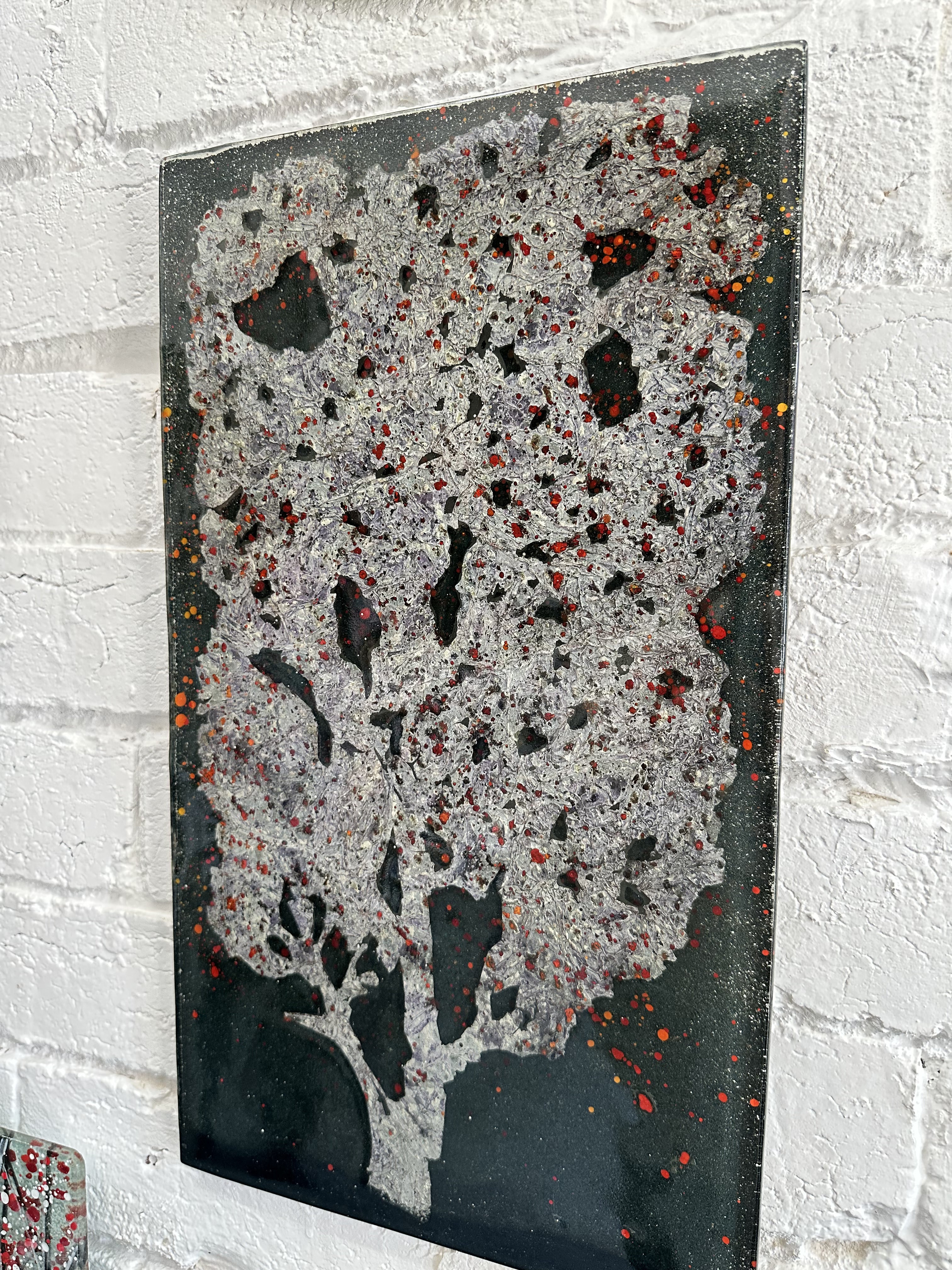 Ember Tree is a striking fused glass artwork exploring contrast, texture, and quiet intensity.