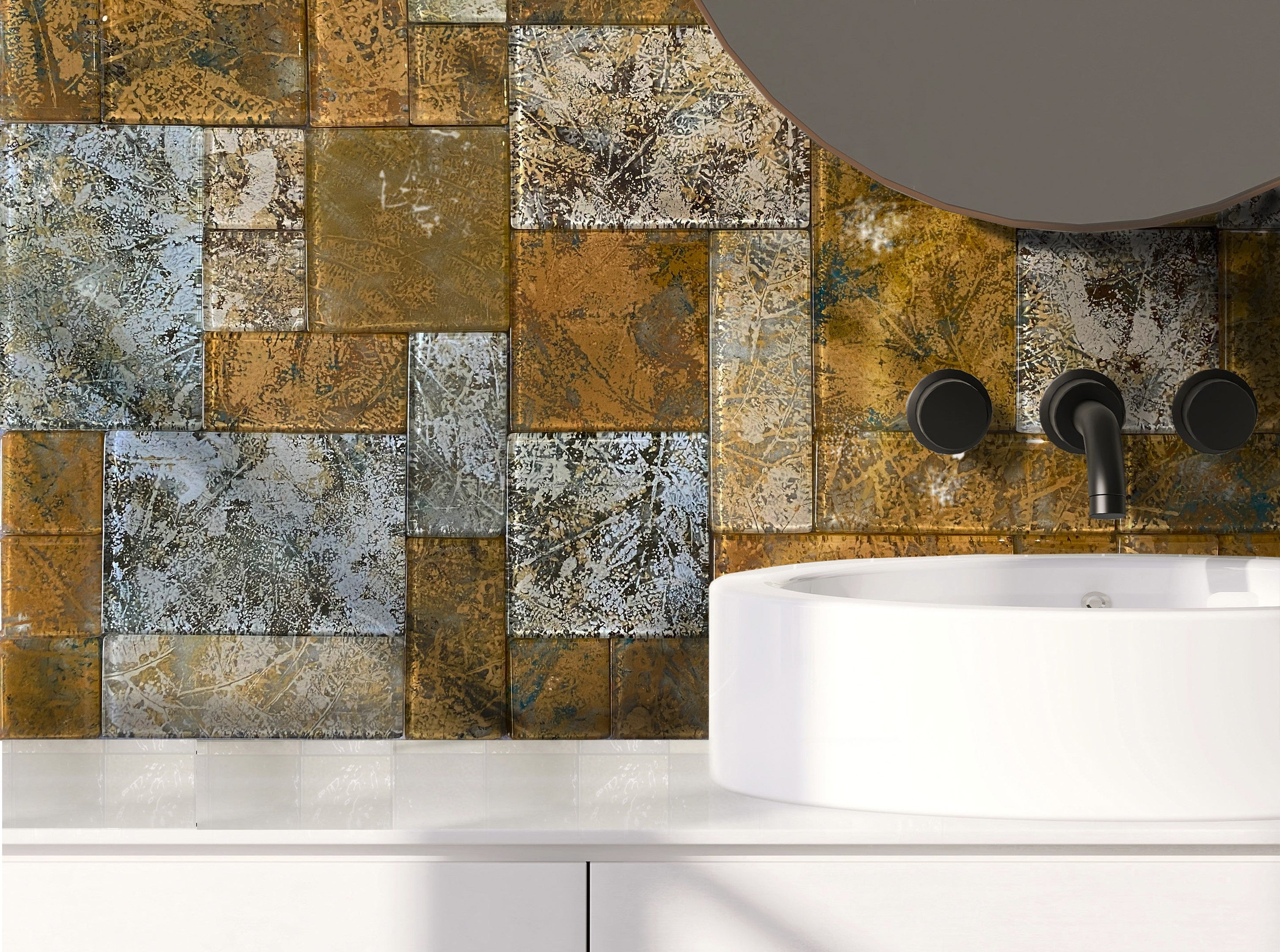 Late summer on the Aegean coast… The sun-scorched hills, the dry yellow tones swaying gently in the breeze, the quiet calm of nature slowing down. We brought this unique atmosphere to life in our hand-painted glass tiles.