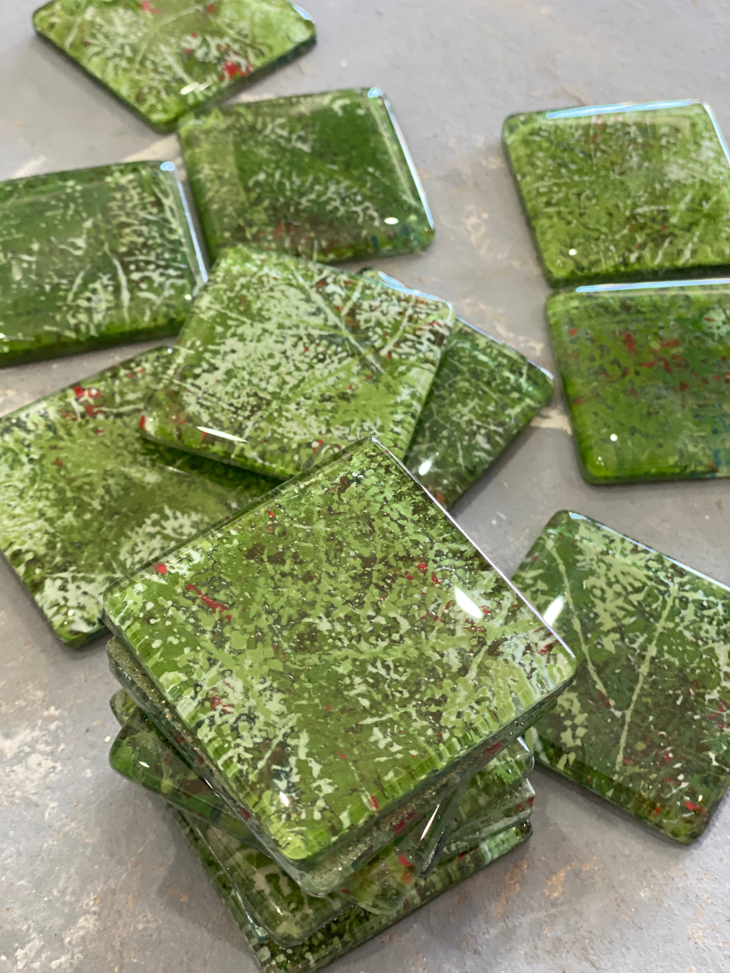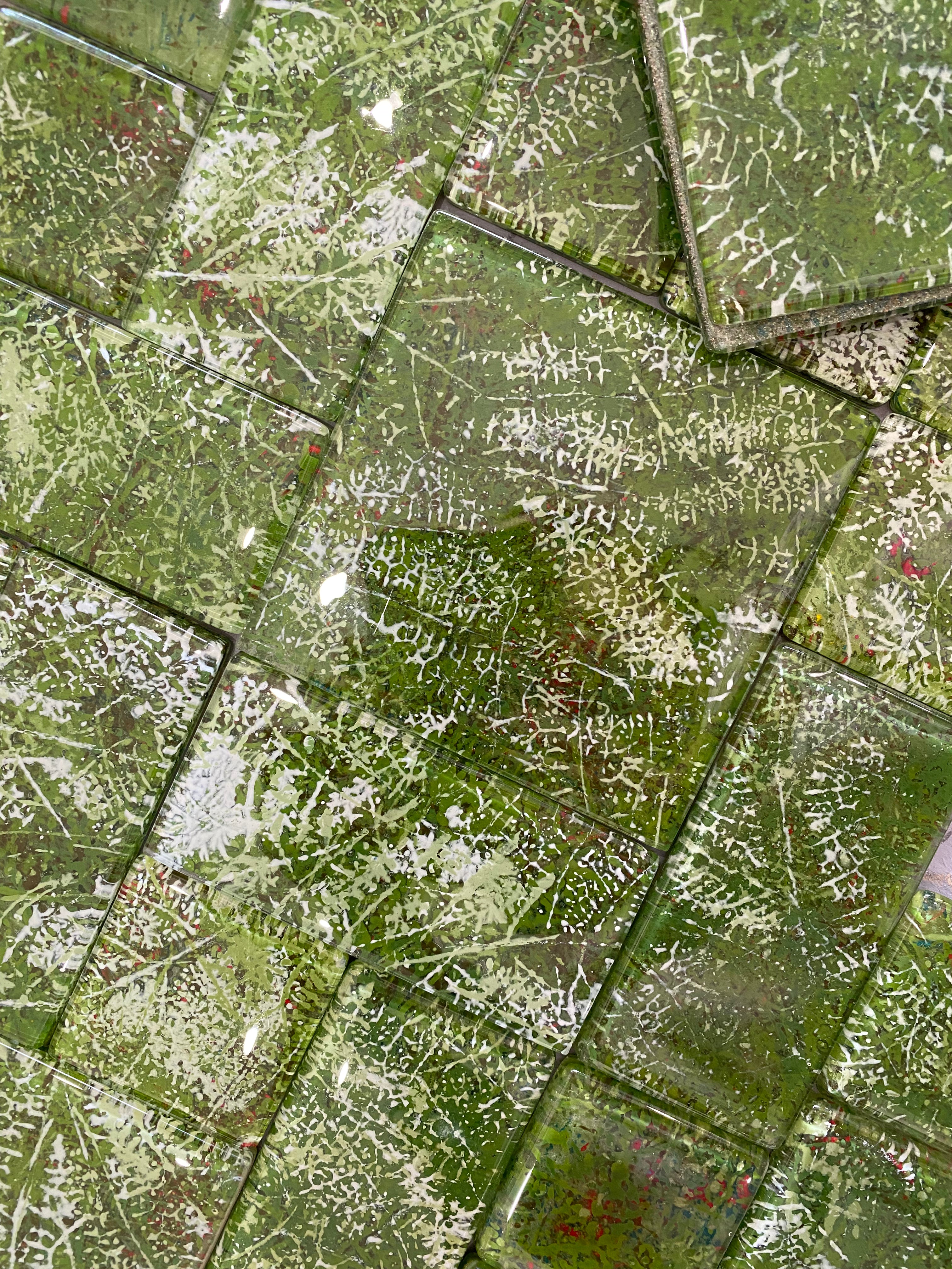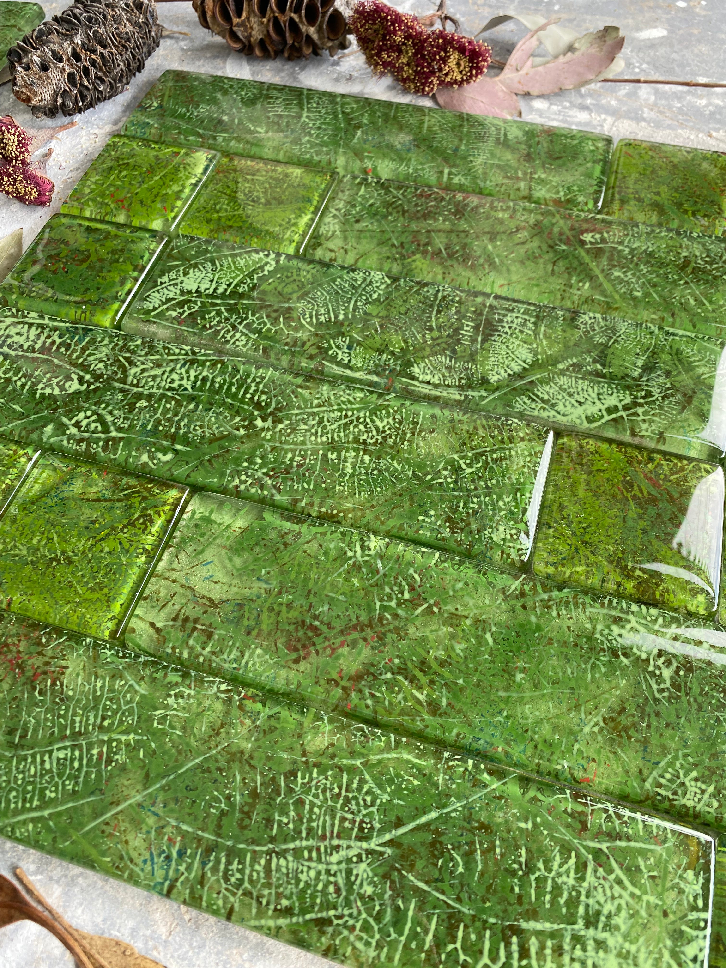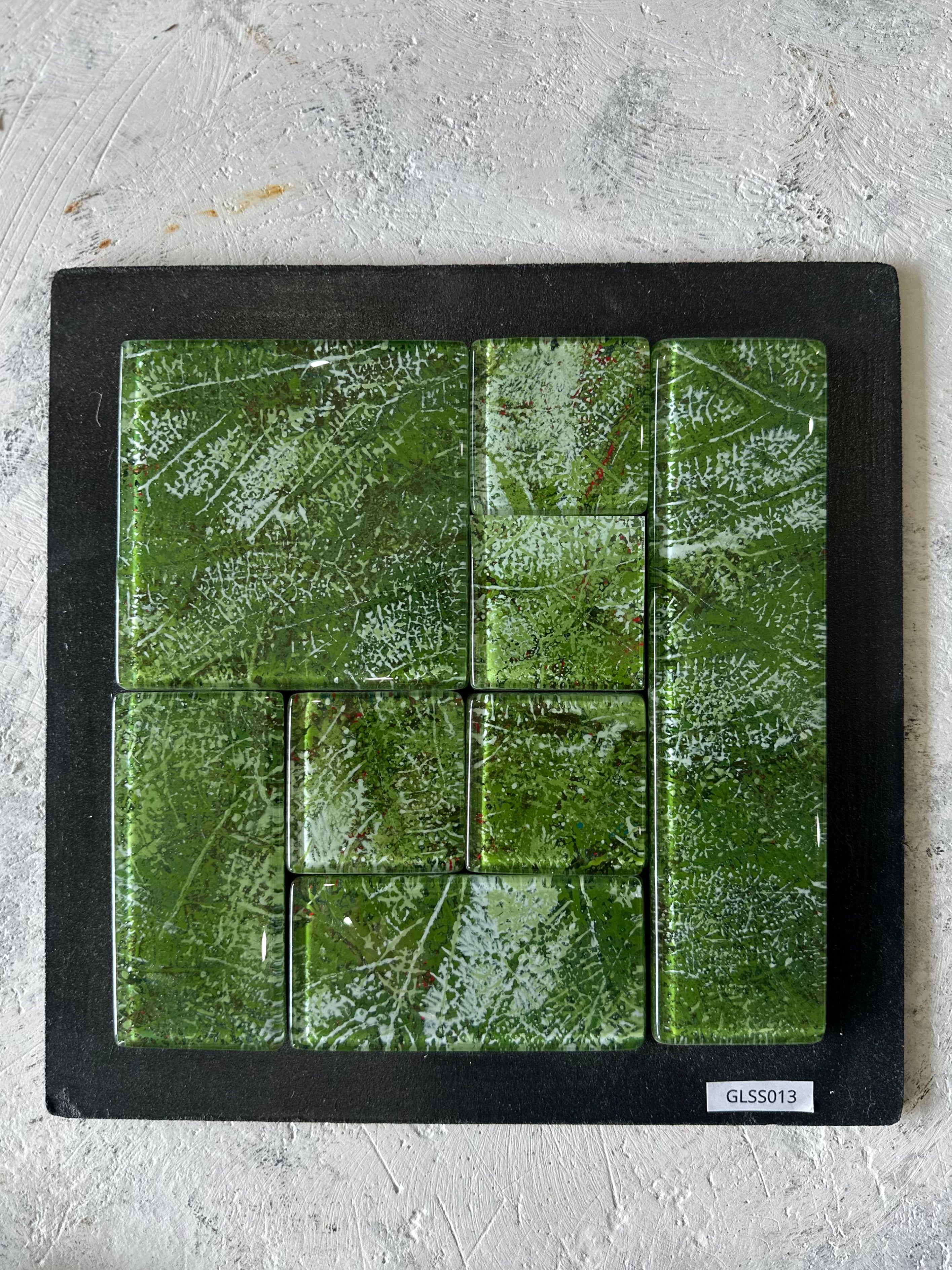All colors used are proprietary blends, meticulously formulated and scaled in our workshop. These glass tile designs, exclusive to our atelier, offer a novel alternative to traditional glass mosaics and splashbacks.
