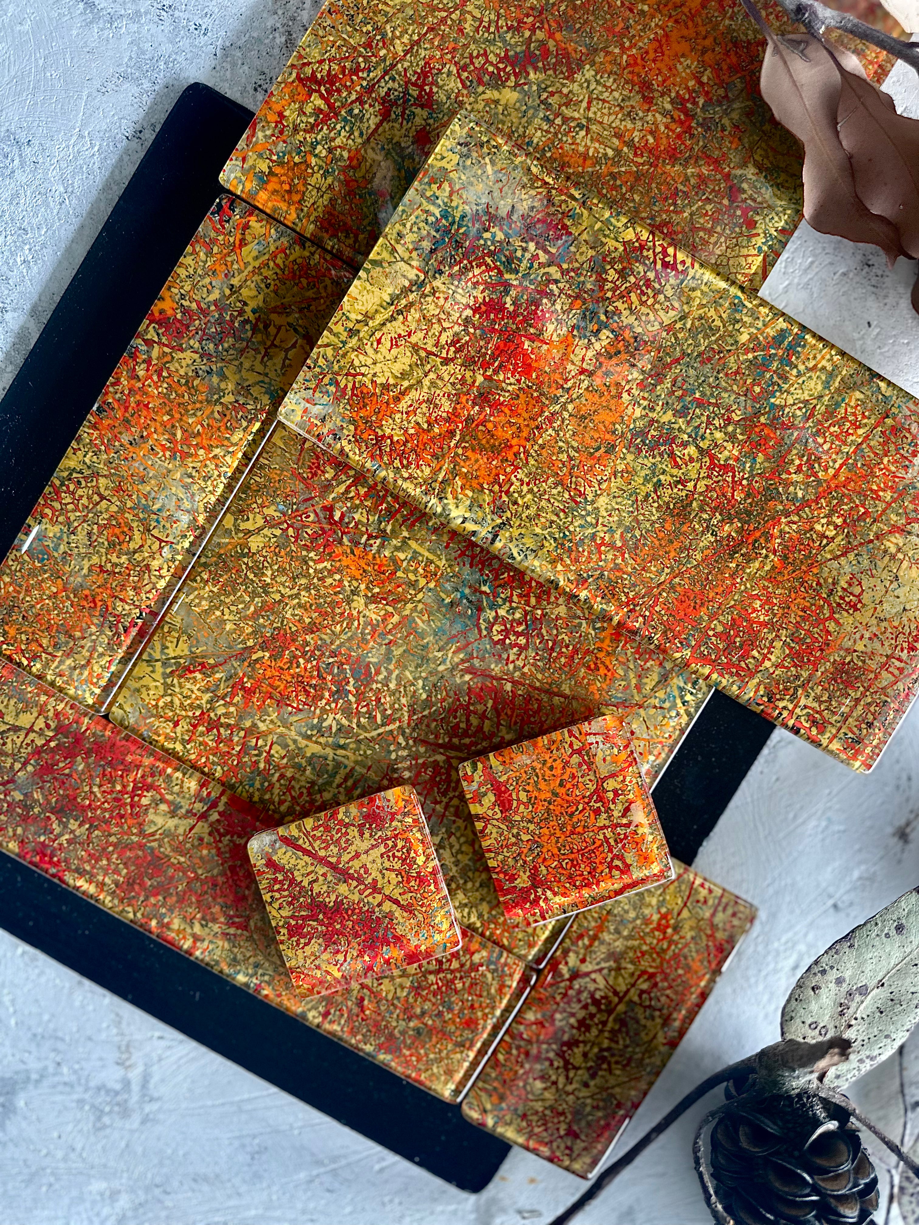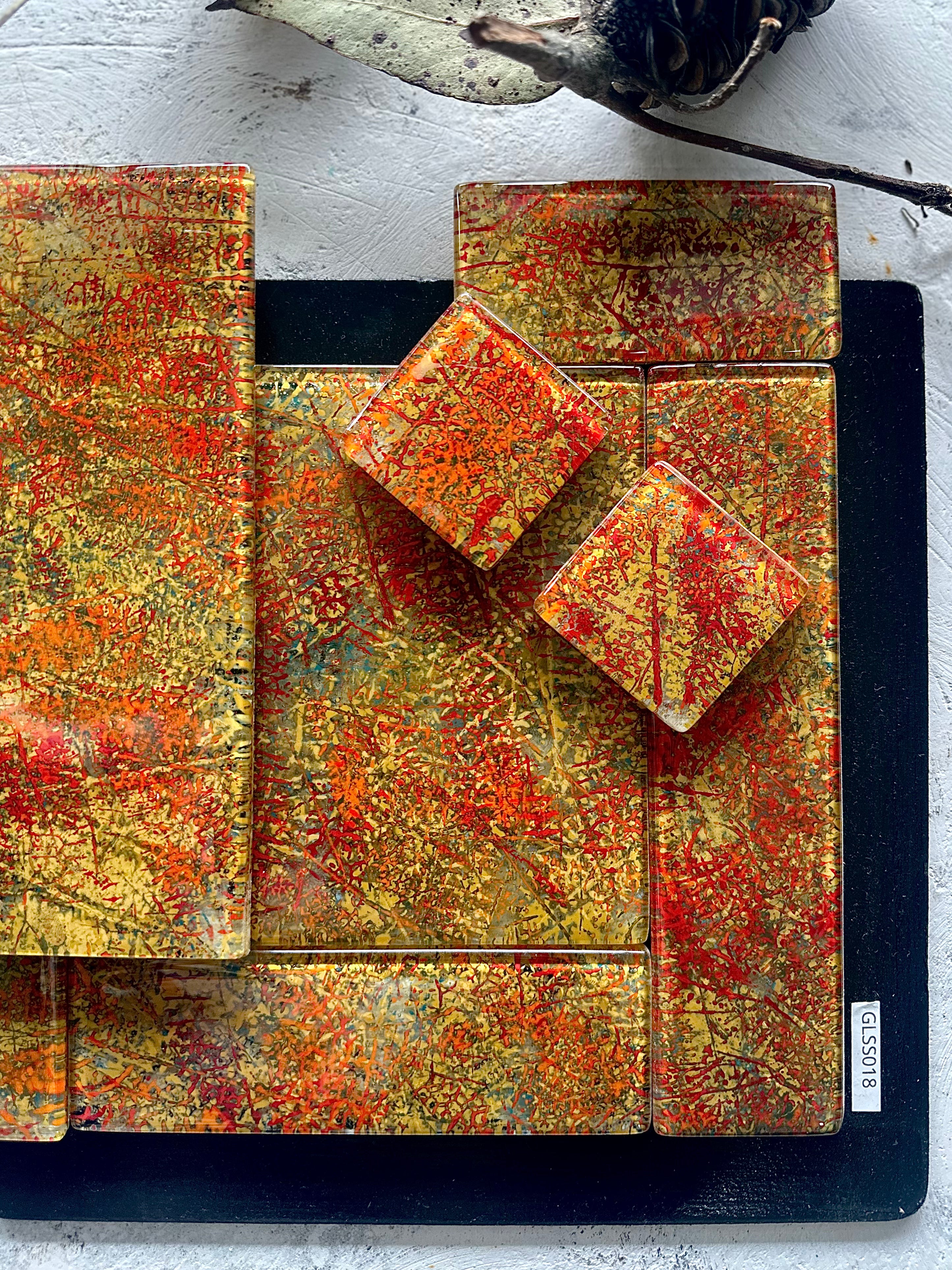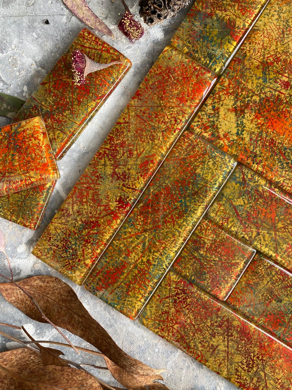 All colors used are proprietary blends, meticulously formulated and scaled in our workshop. These glass tile designs, exclusive to our atelier, offer a novel alternative to traditional glass mosaics and splash backs.