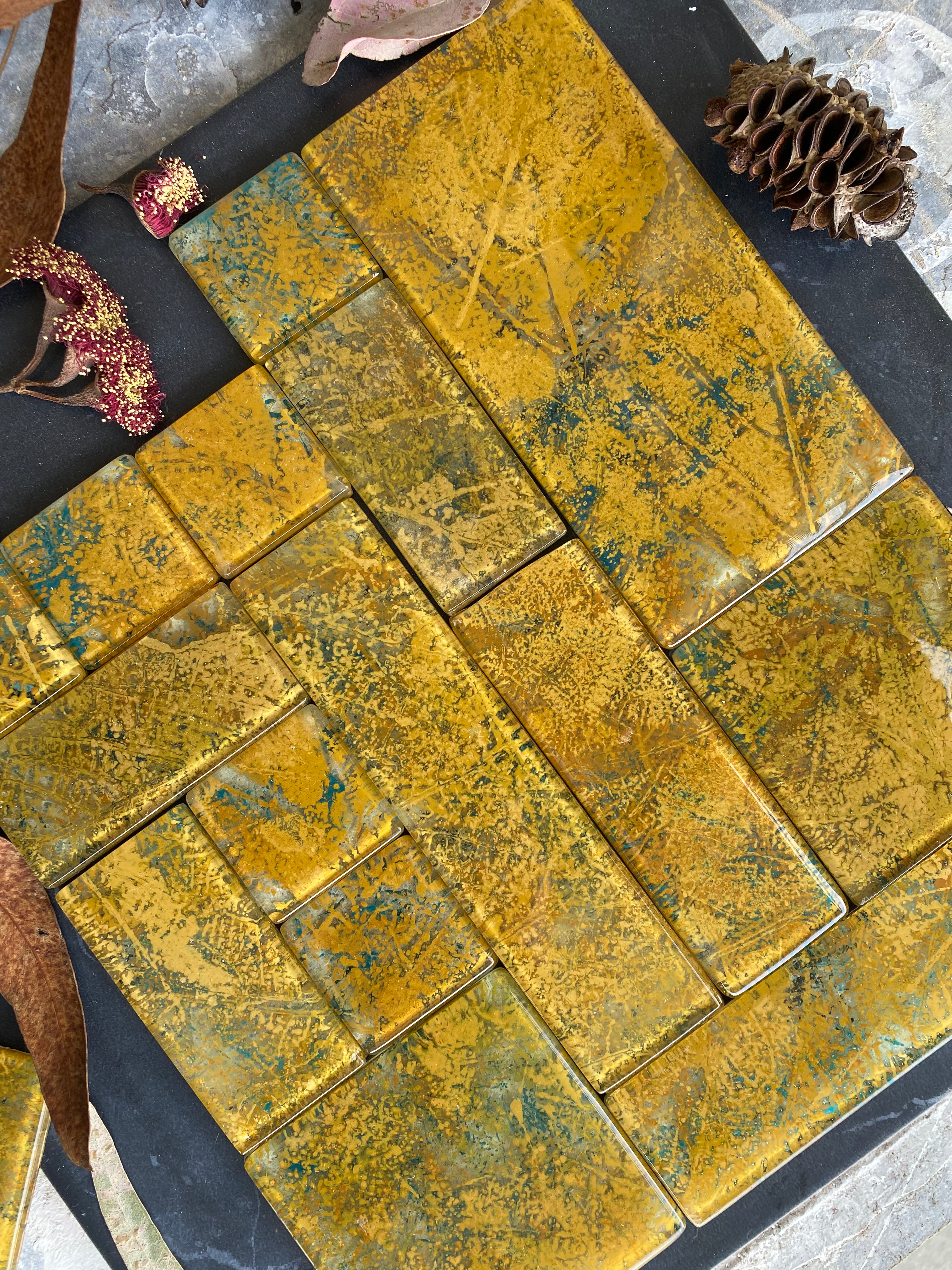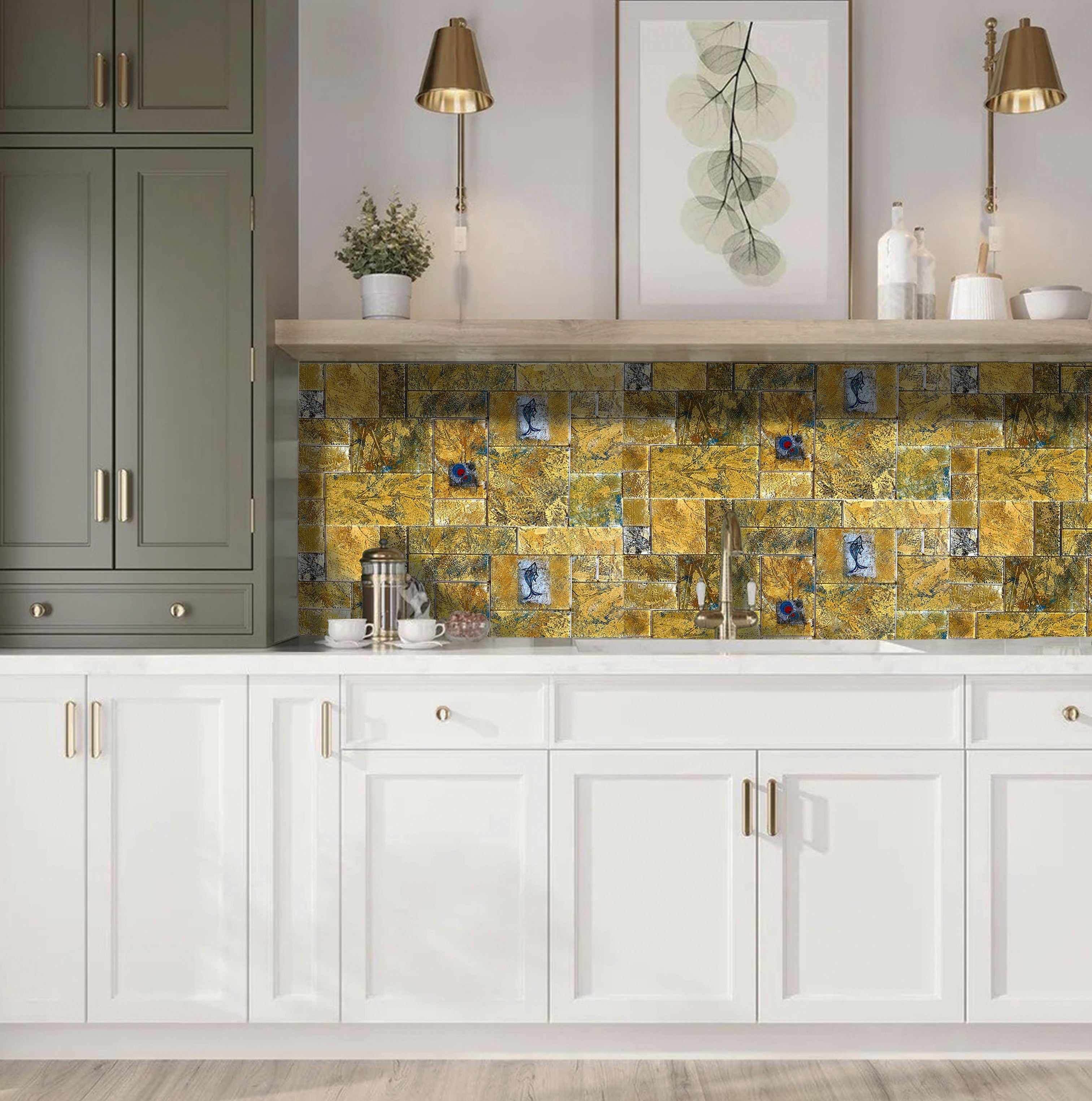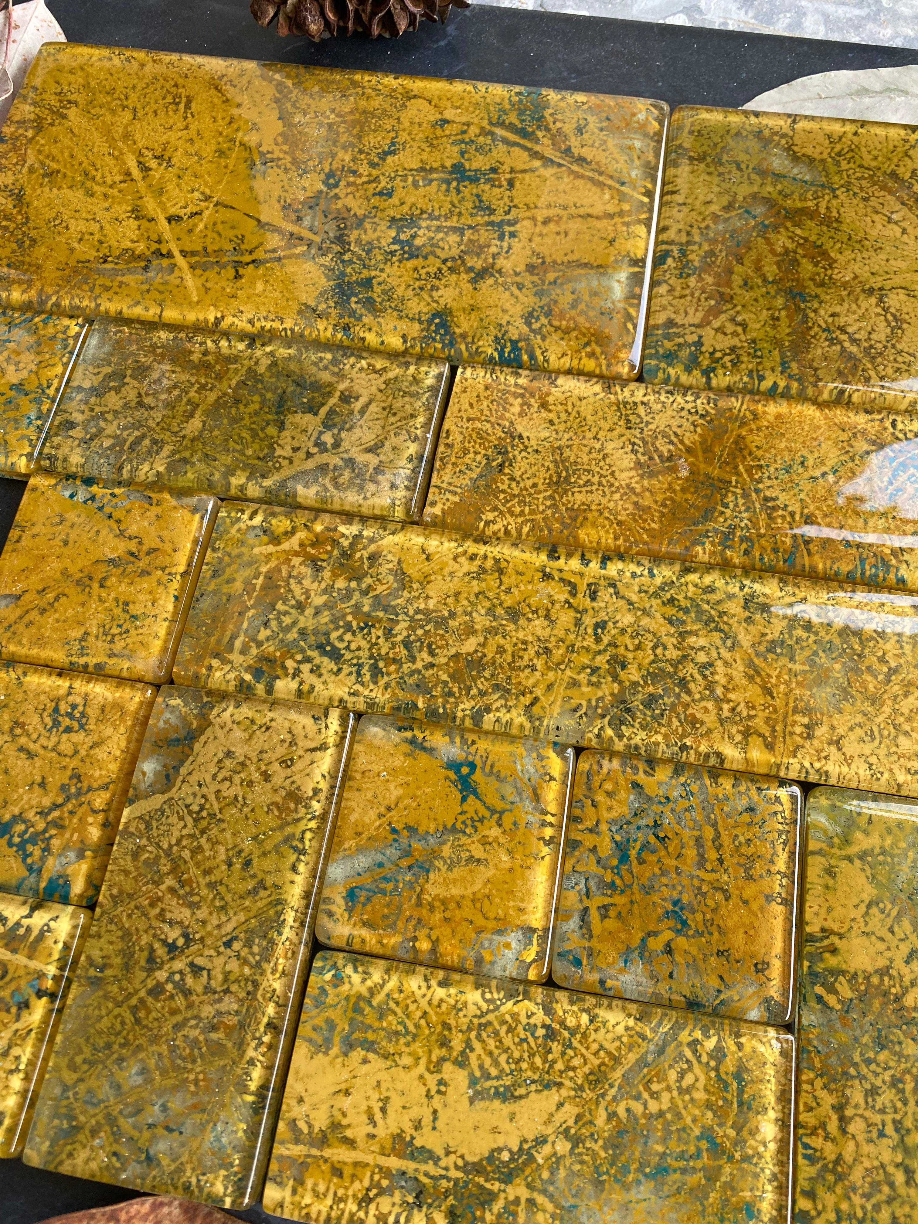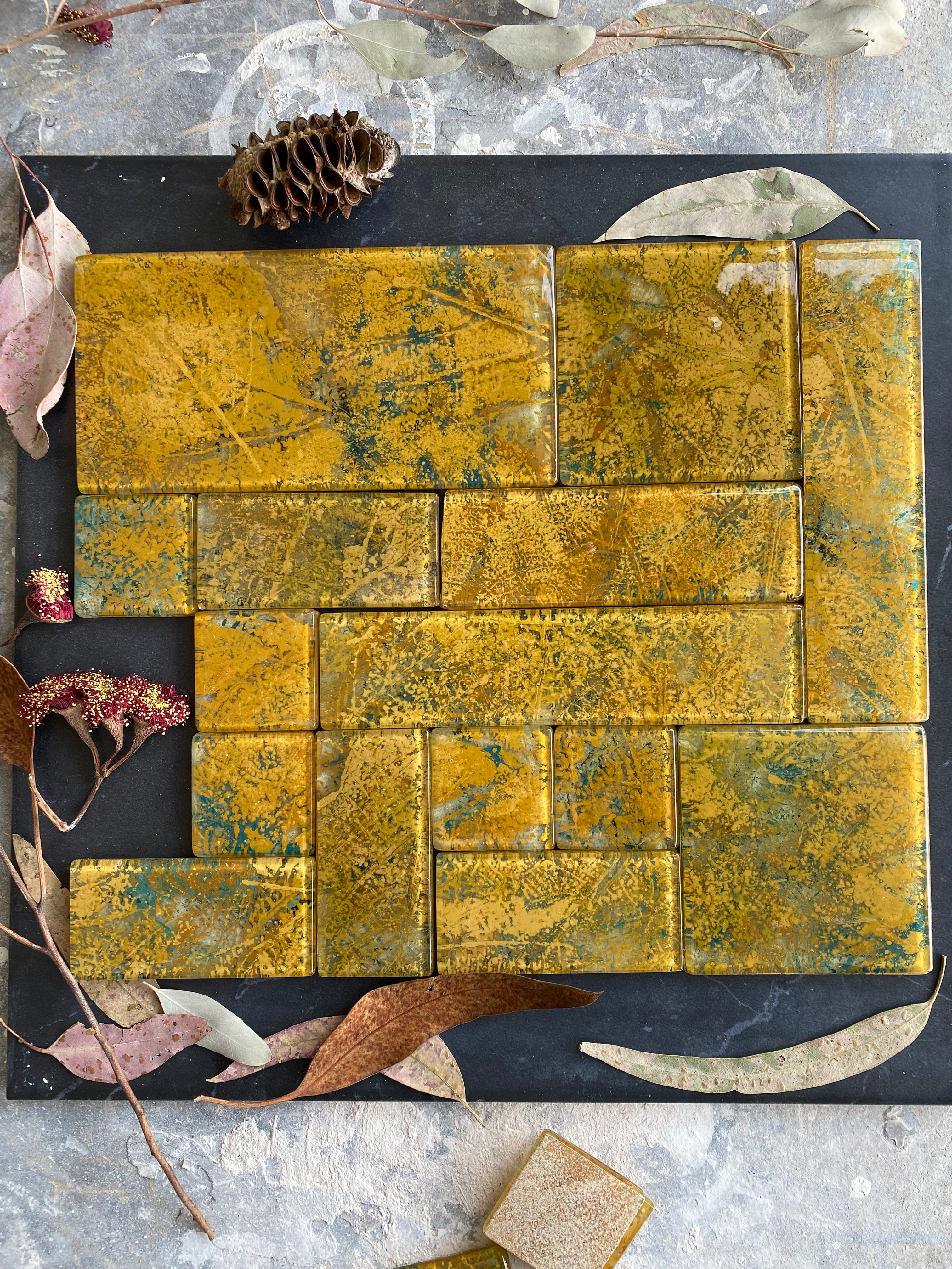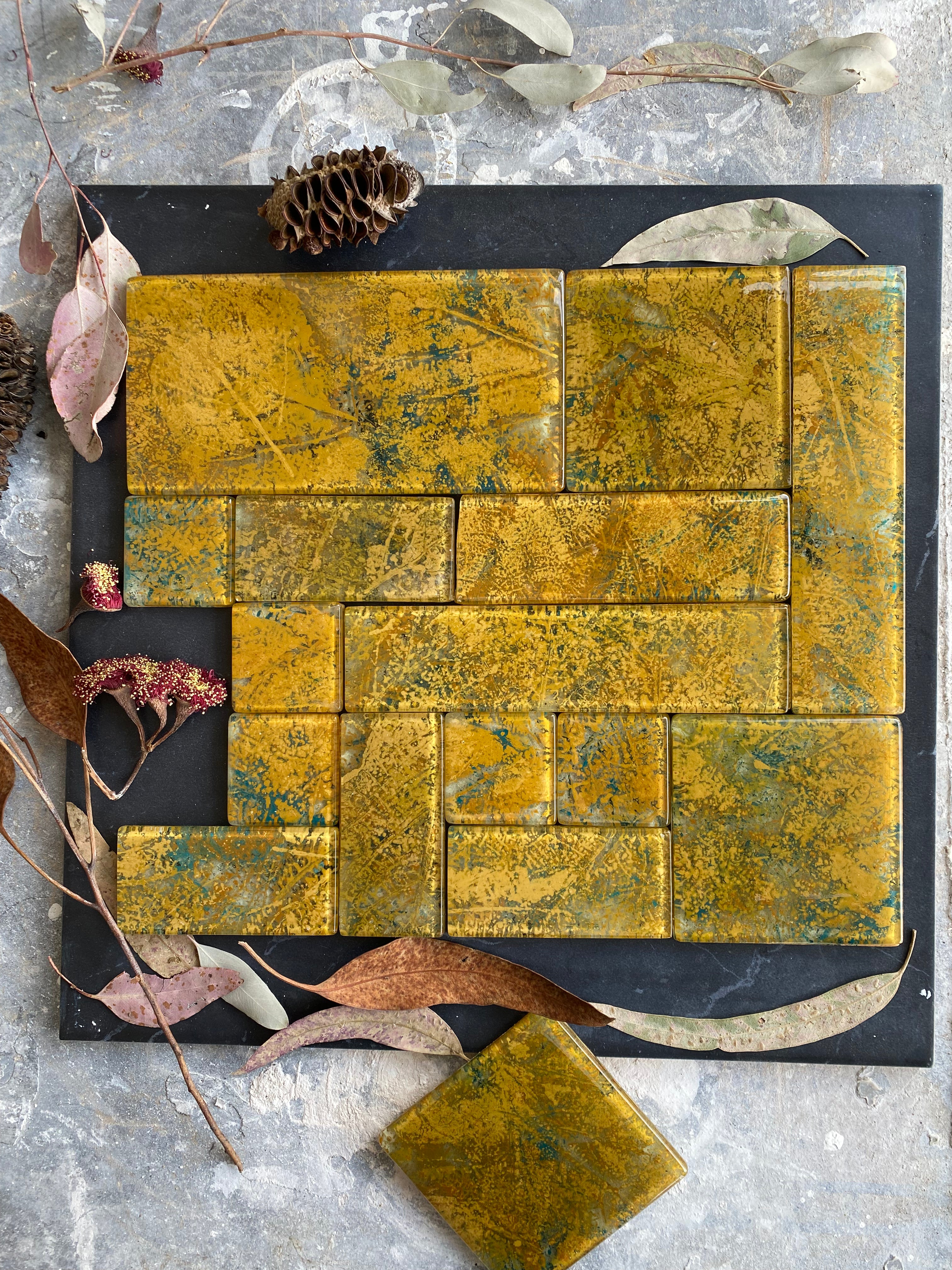 All colors used are proprietary blends, meticulously formulated and scaled in our workshop. These glass tile designs, exclusive to our atelier, offer a novel alternative to traditional glass mosaics and splash backs.