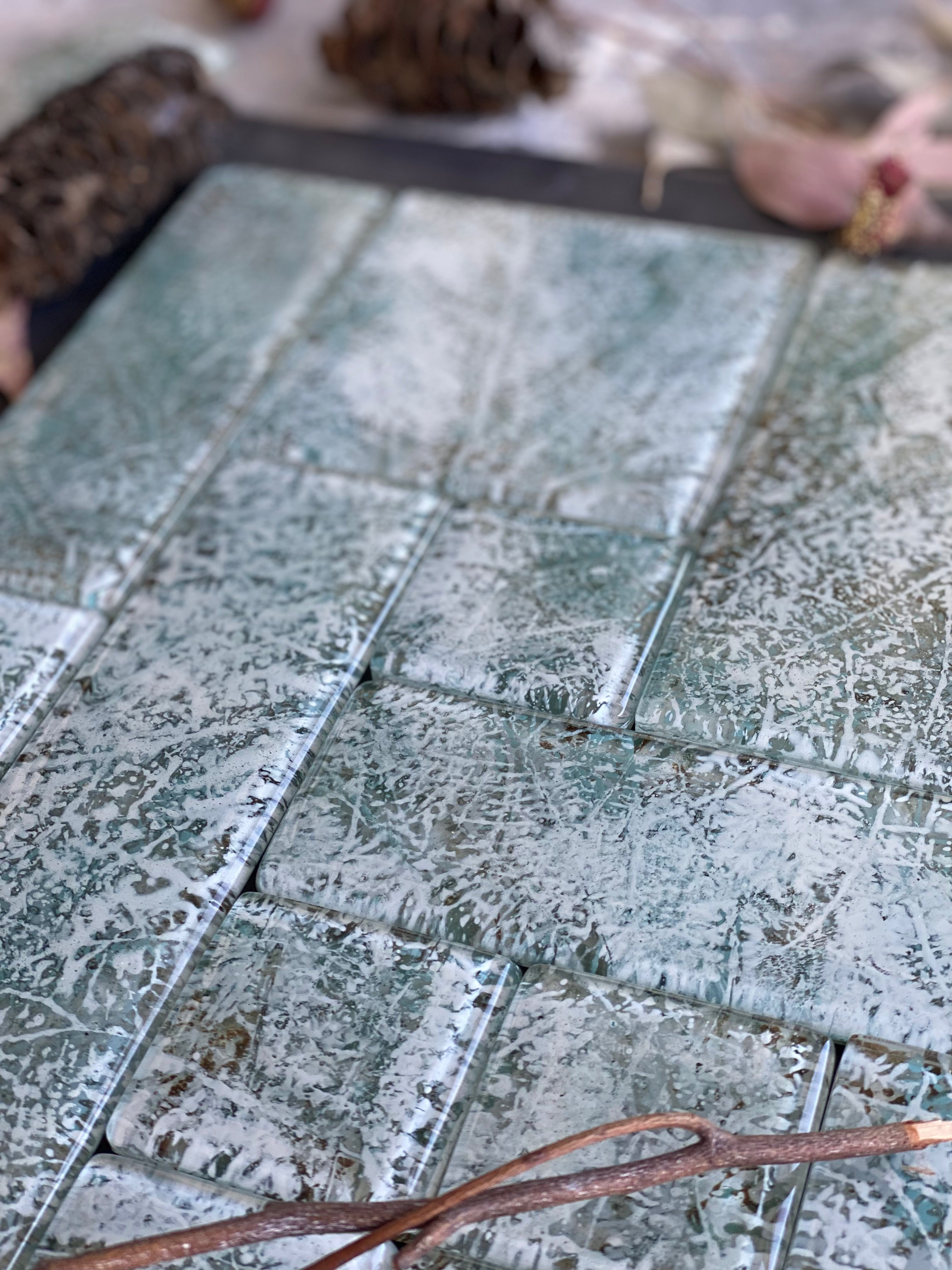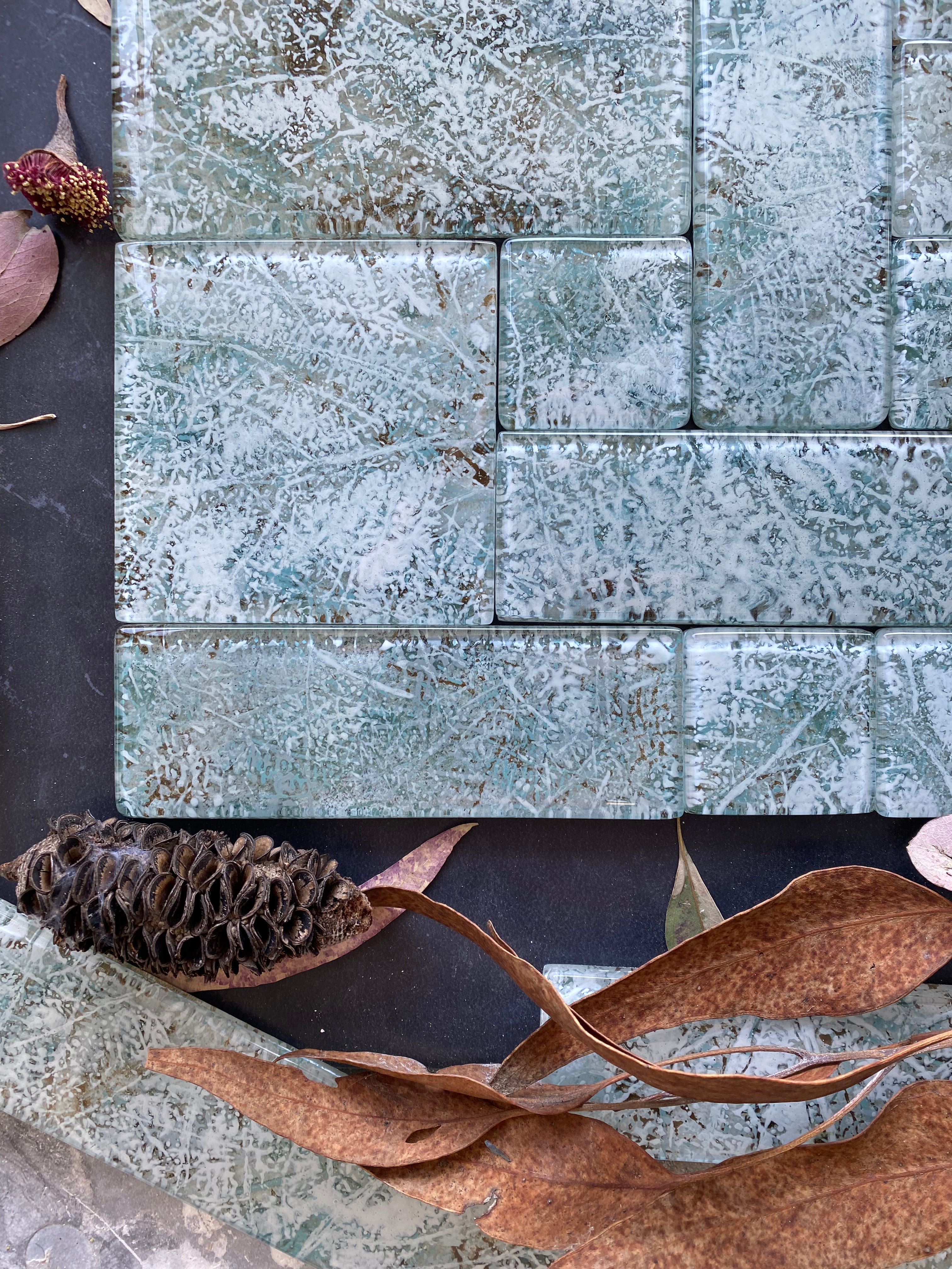 All colors used are proprietary blends, meticulously formulated and scaled in our workshop. These glass tile designs, exclusive to our atelier, offer a novel alternative to traditional glass mosaics and splashbacks.