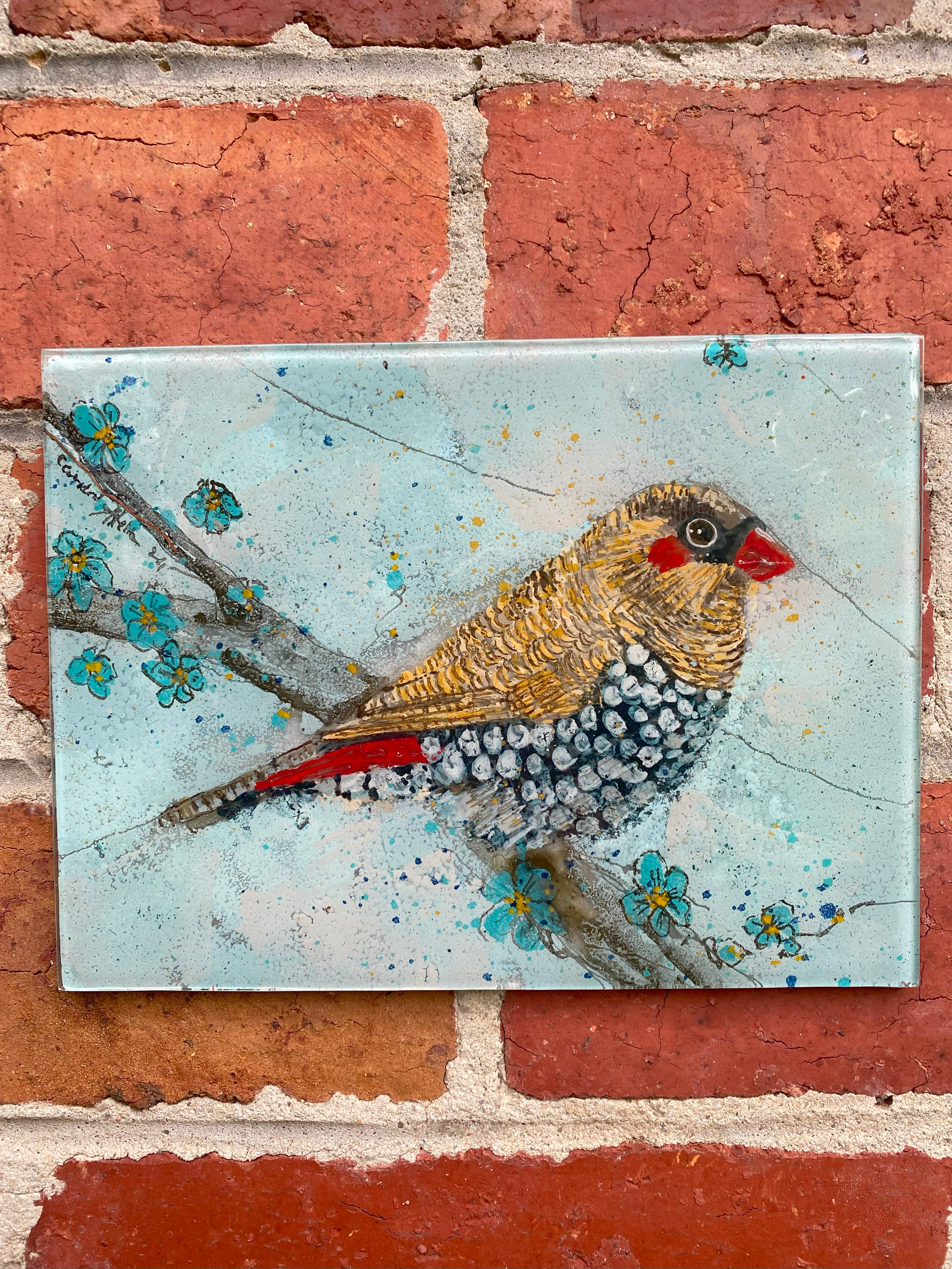 All off the our glass works are hand painting. Parmanent colours, paints are between the two glasses and at the bottom of the tiles. Able to use inside and outside. There are hangers on the back
