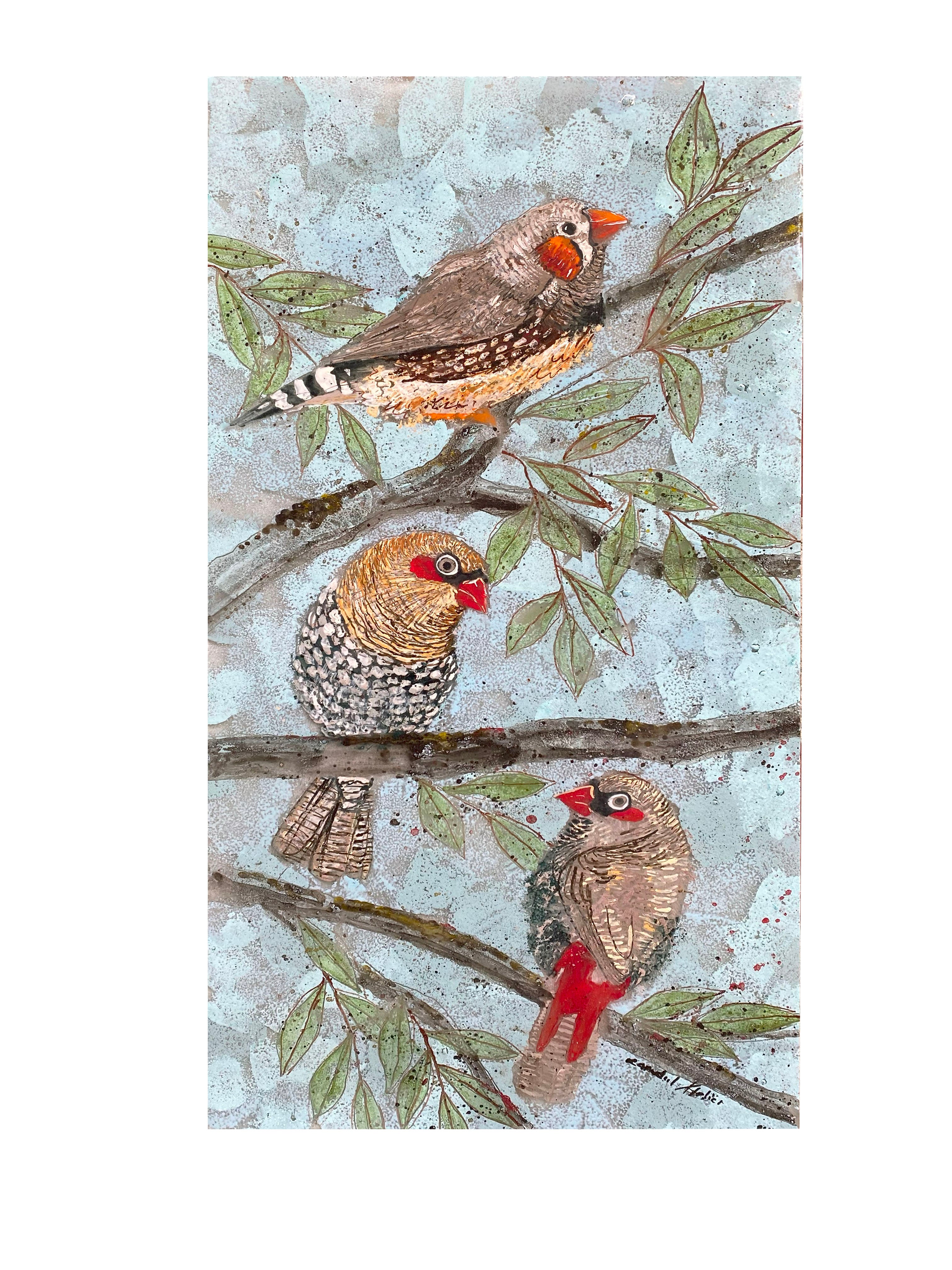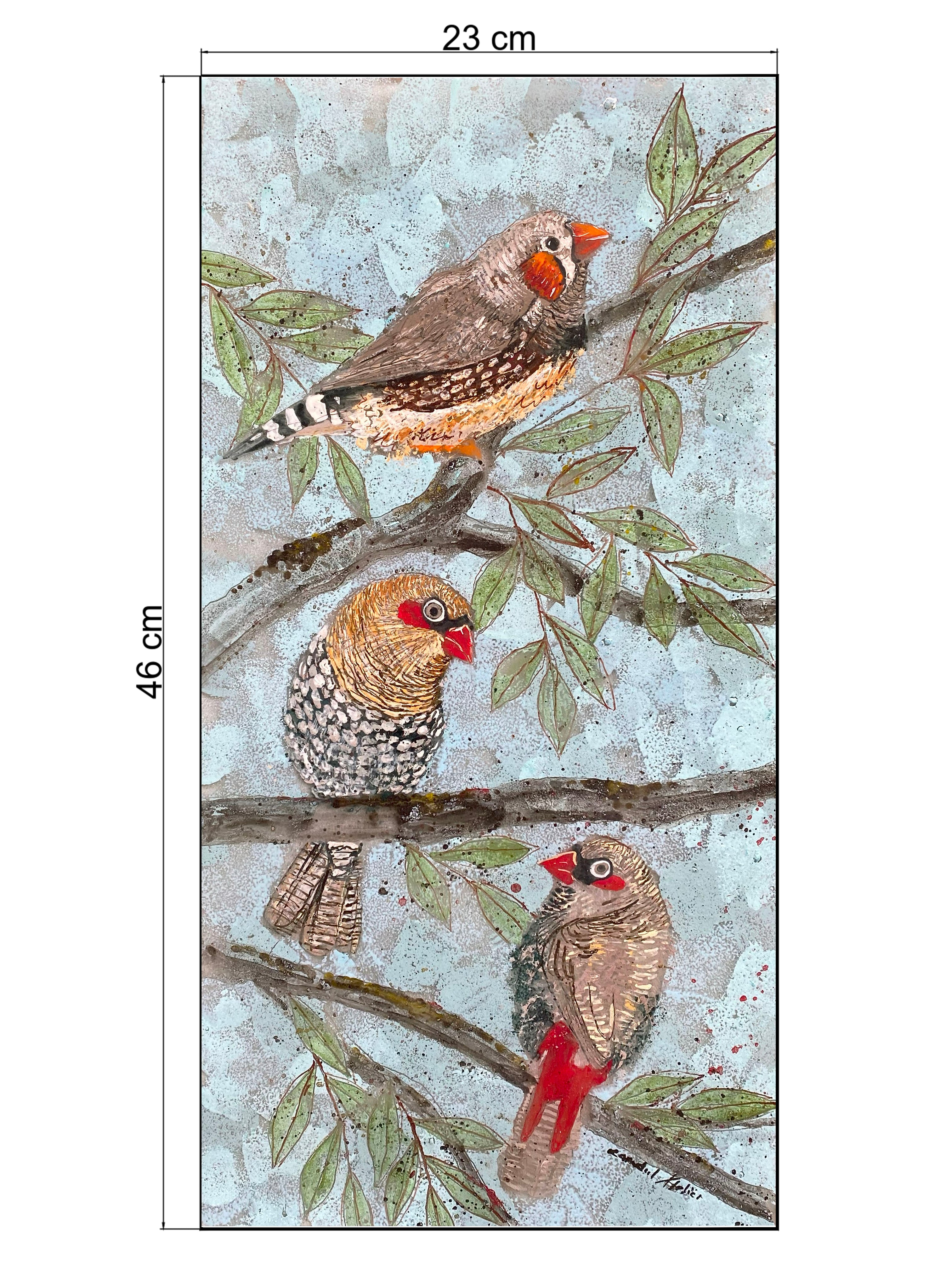All off the our glass works are hand painting. Parmanent colours, paints are between the two glasses and at the bottom of the tiles. Able to use inside and outside. There are hangers on the back