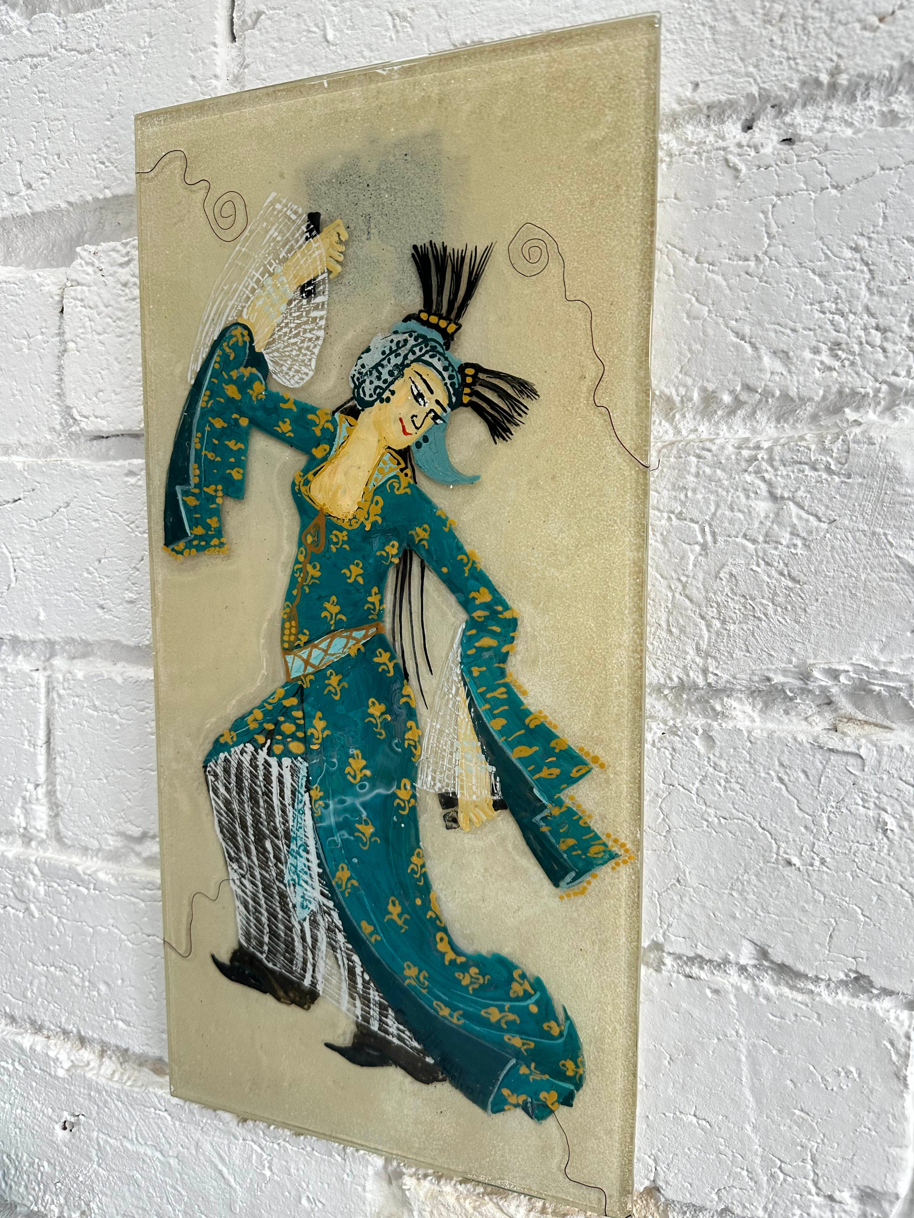 Handmade Fused Glass Wall Panel – Dancing Figure Artwork