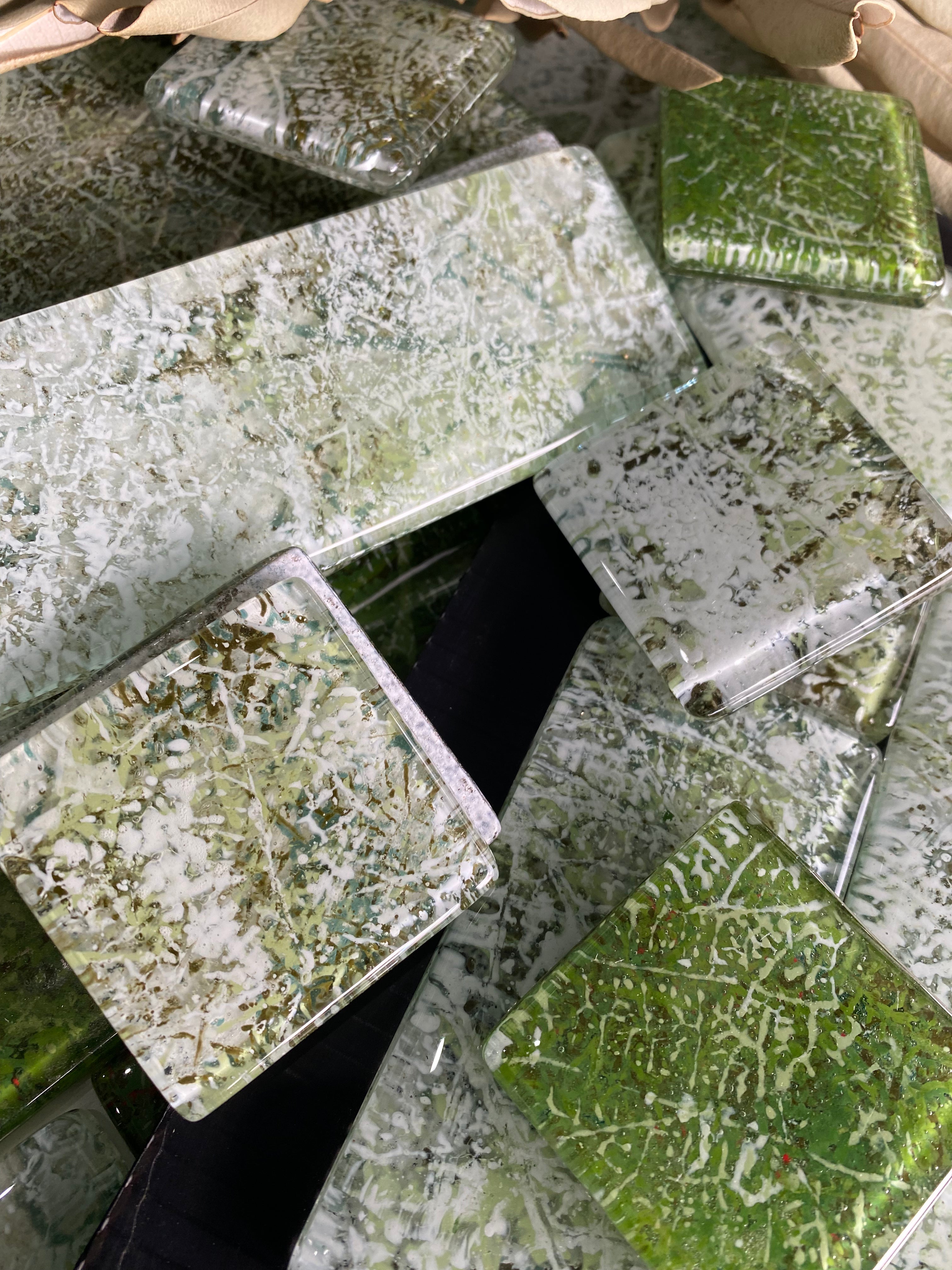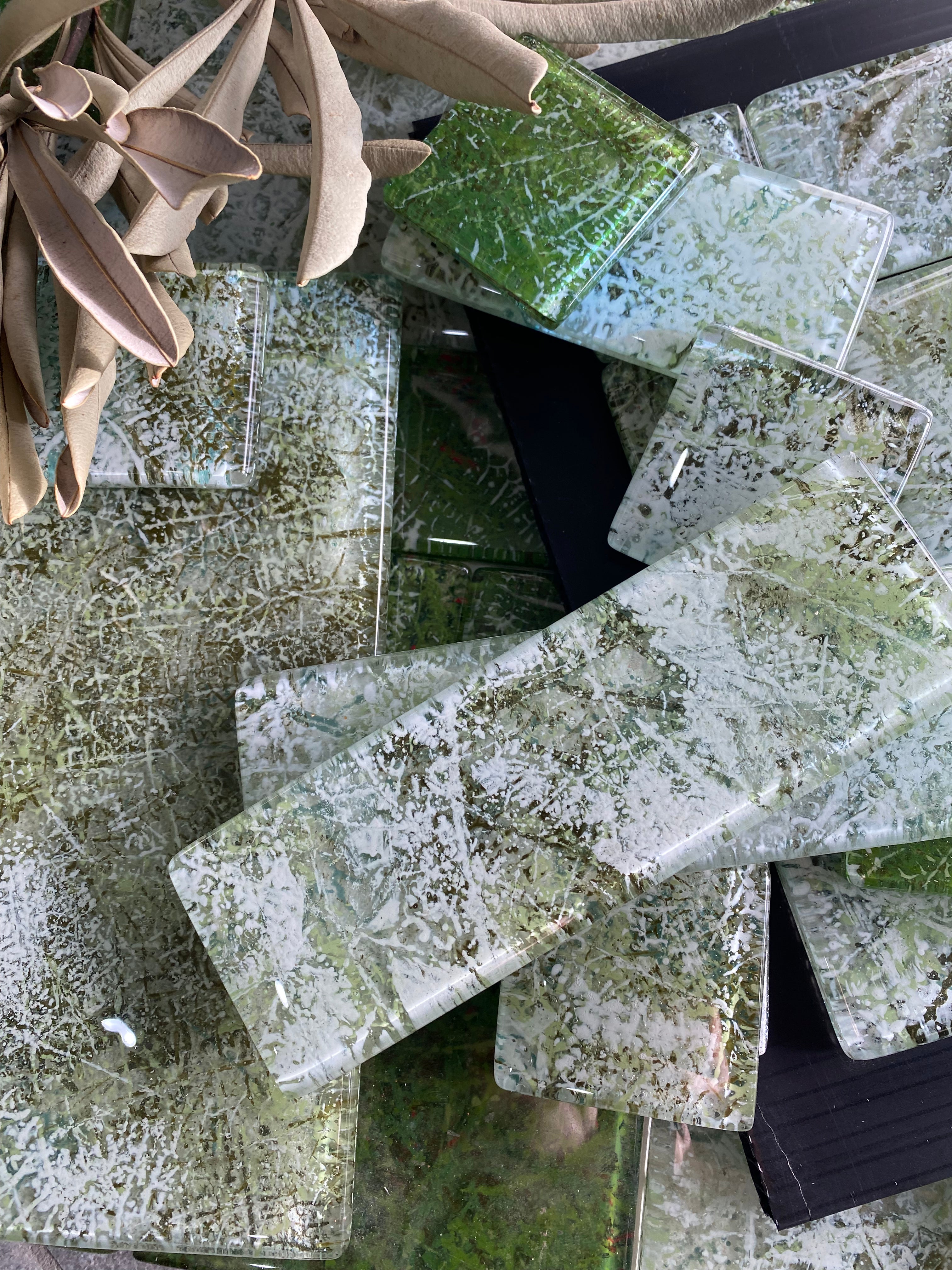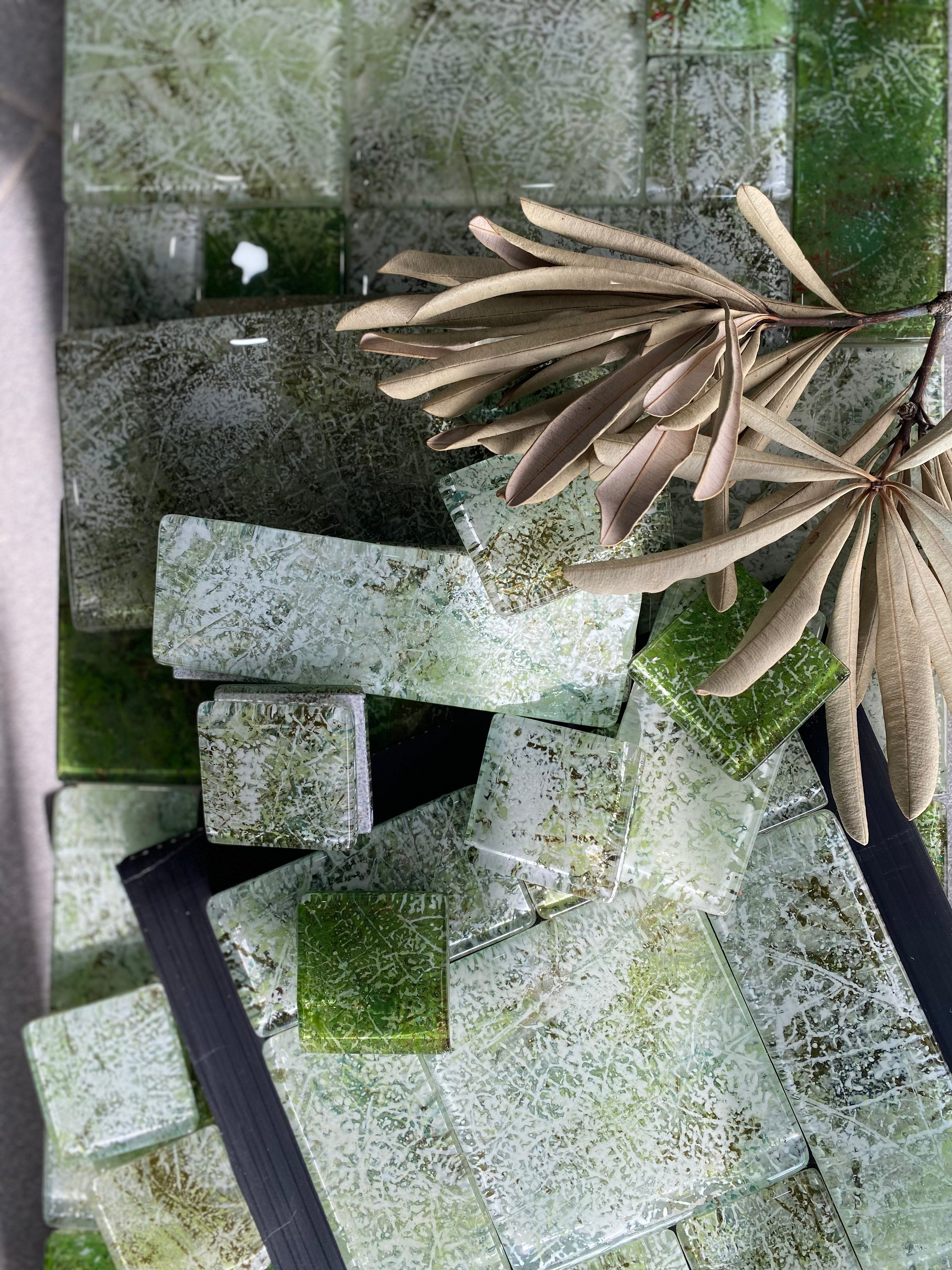 Each Night Green tile is crafted from our atelier’s unique color blends, using up to four pigments layered on both the front and back of the glass. This technique enhances the tile’s natural depth and transparency. Suitable for all wall surfaces where ceramic tiles are used—kitchens, bathrooms, feature walls—and durable enough for outdoor applications.