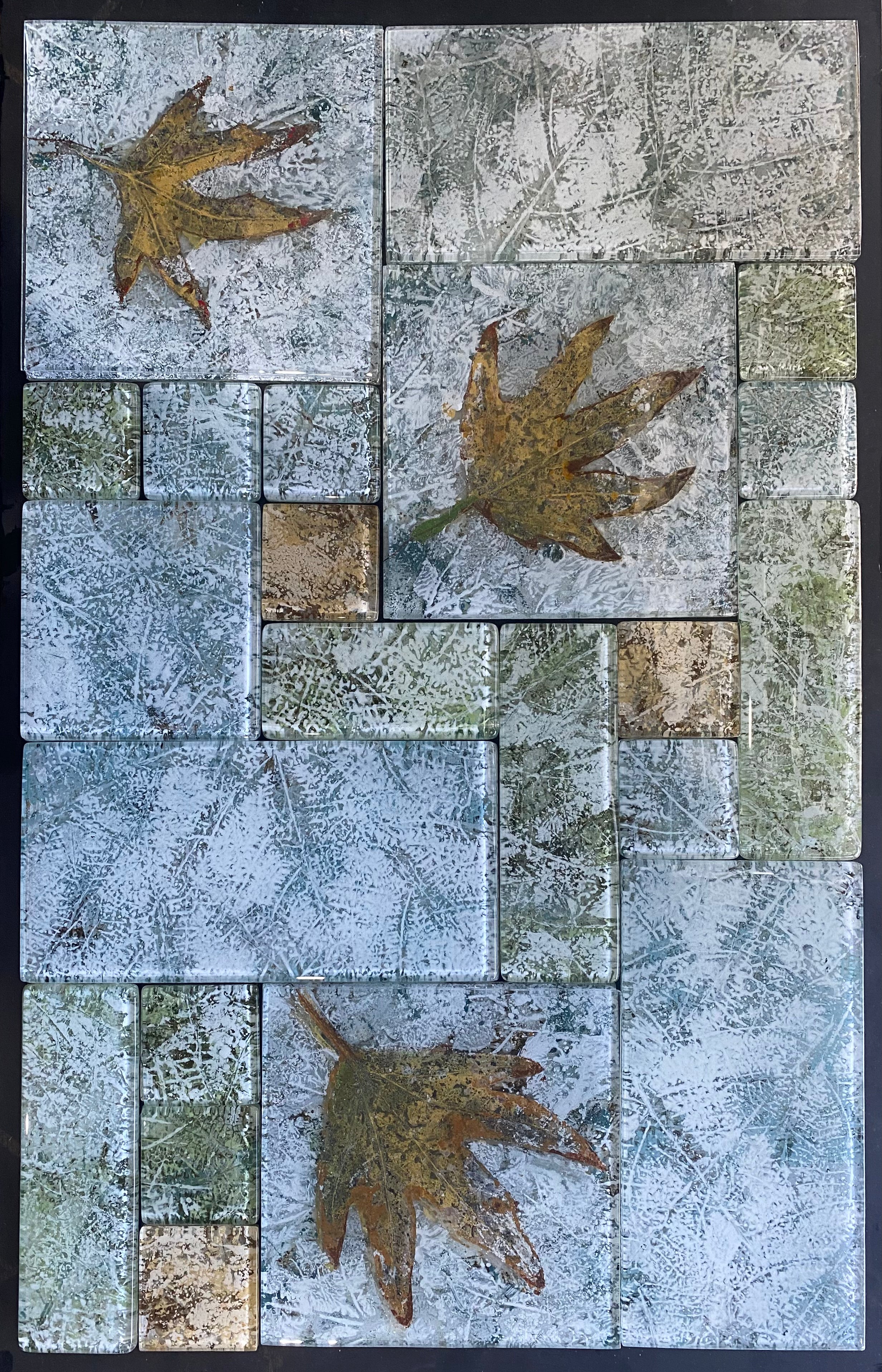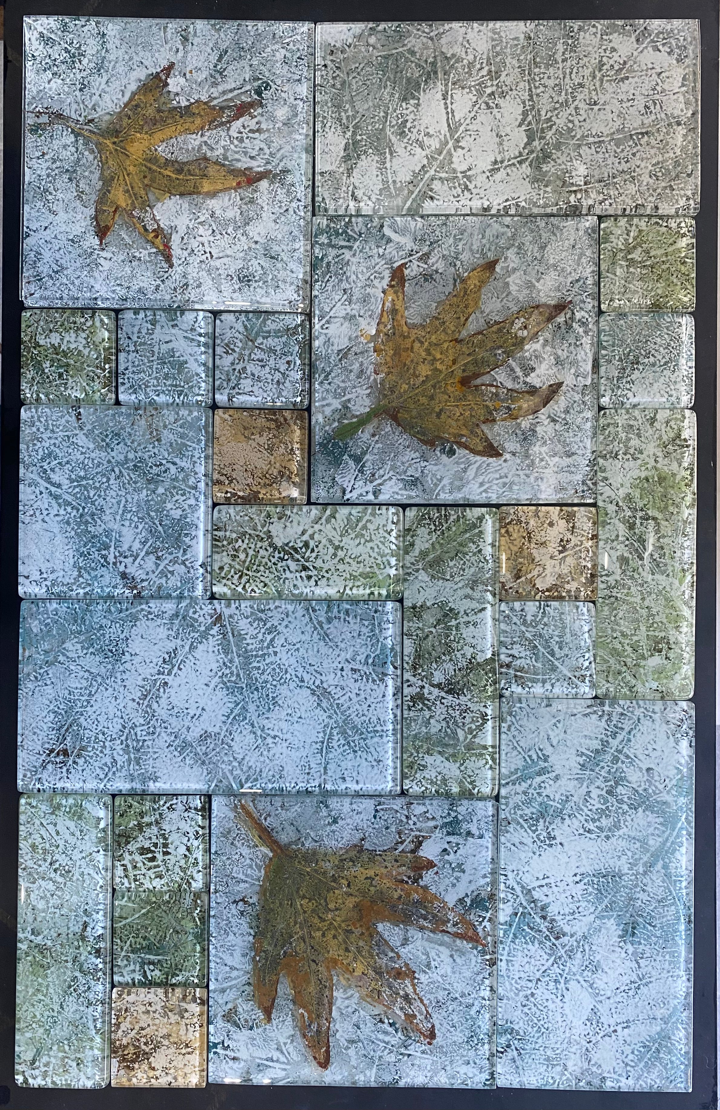In our glass tiles, nestled between two panes, we scattered the cool hues of winter, while the plane leaves whisper the true tones of autumn—inviting you to feel the essence of the fall within every glance.